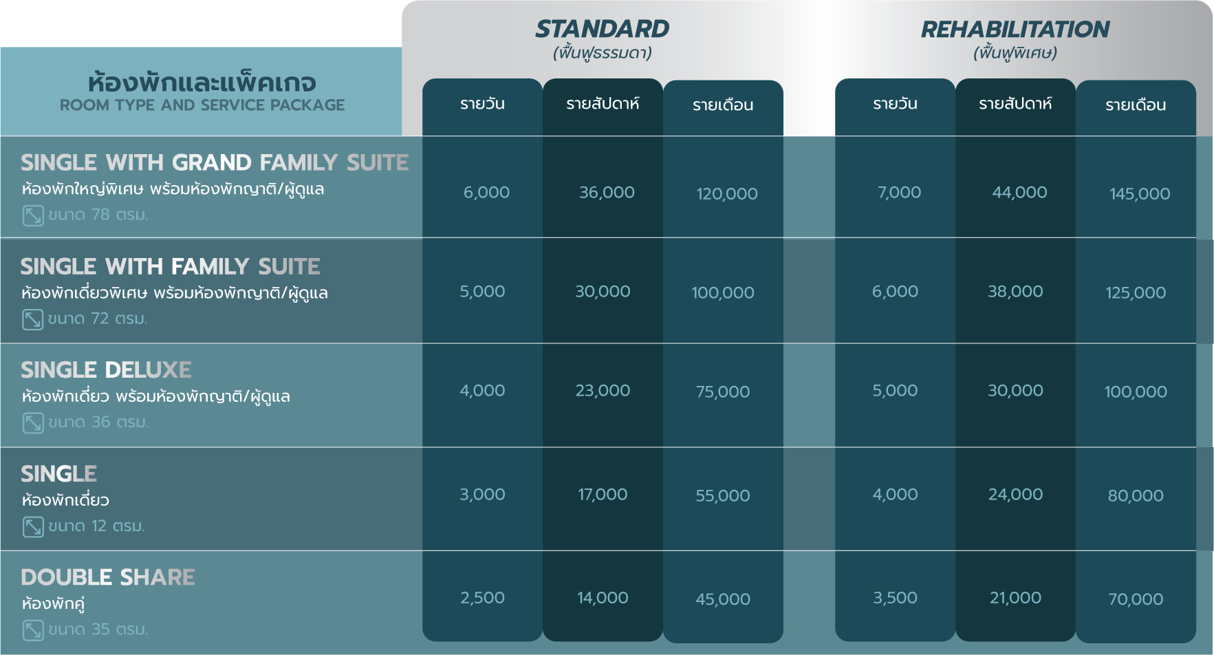 Patient rooms are designed based on the approved concepts of the World Rehabilitation Resort Universal Design. This has created the best form of rehabilitation, together with a world-class resort atmosphere, while staying focused on the sense of rest and relaxation to maximize physical and mental health and foster true happiness for everyone.