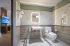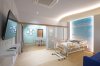 Patient rooms equipped with air conditioning, a mini-bar, a balcony with a garden view, and a private bathroom with a walk-in shower area.